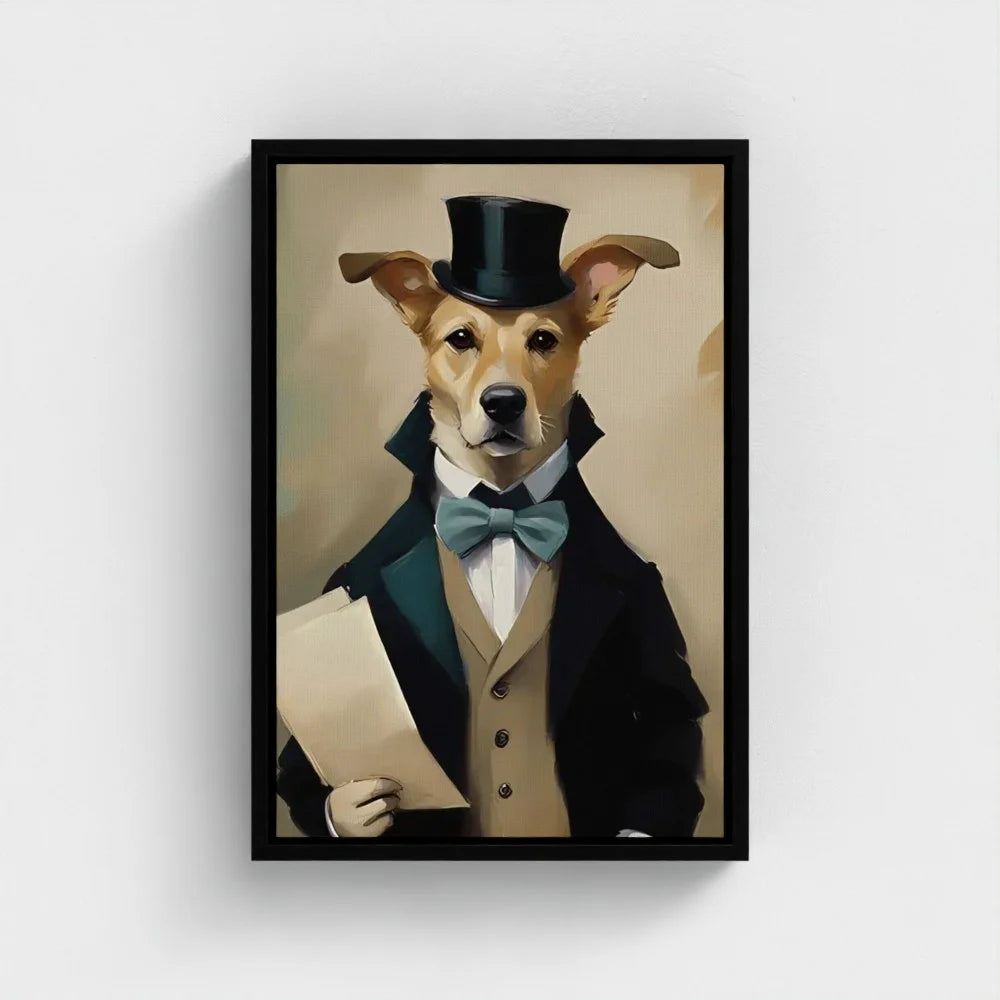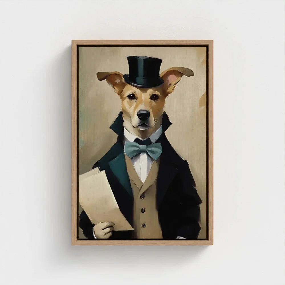Uncover mystery with The Detective – a custom pet portrait that transforms your furry friend into a sharp-eyed investigator. Dressed in refined attire and holding a secret file, your pet becomes the mastermind of suspense and intrigue. Perfect as a unique gift, pet memorial, or striking wall décor, this oil painting–inspired artwork brings timeless charm and storytelling elegance into any home.